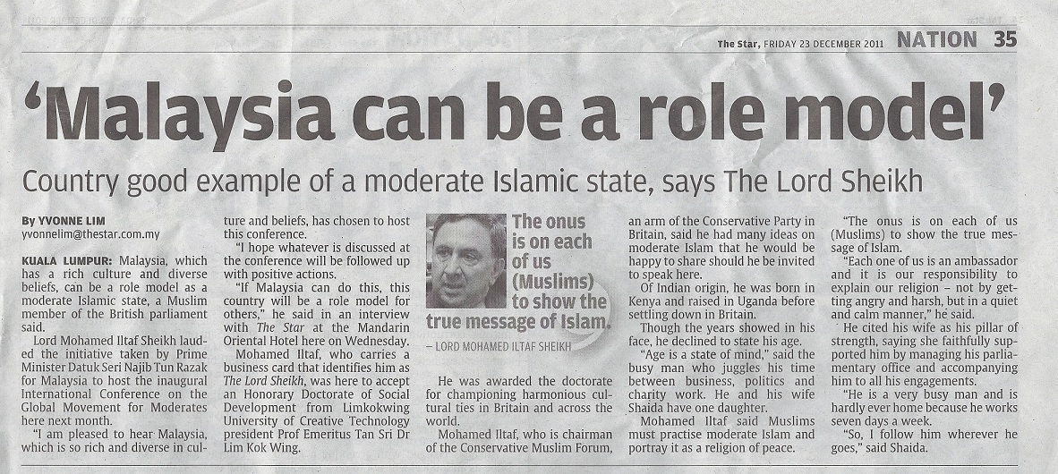 While he was in Malaysia, Lord Sheikh also held meetings with several senior politicians and business leaders and also was interviewed live on a Malaysian national television channel.